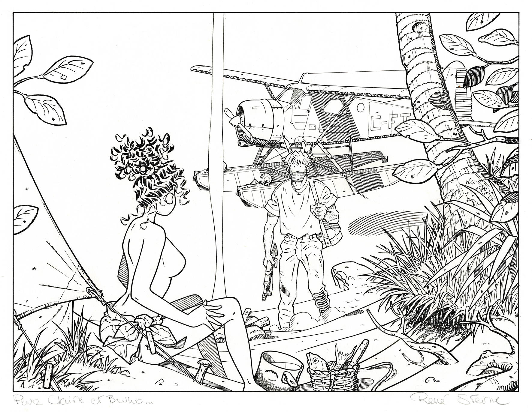 Adler, dessin original à l’encre de chine réalisé pour une sérigraphie parue en 1997 chez Equinoxe. Dimensions : 41 cm x 30,5 cm.