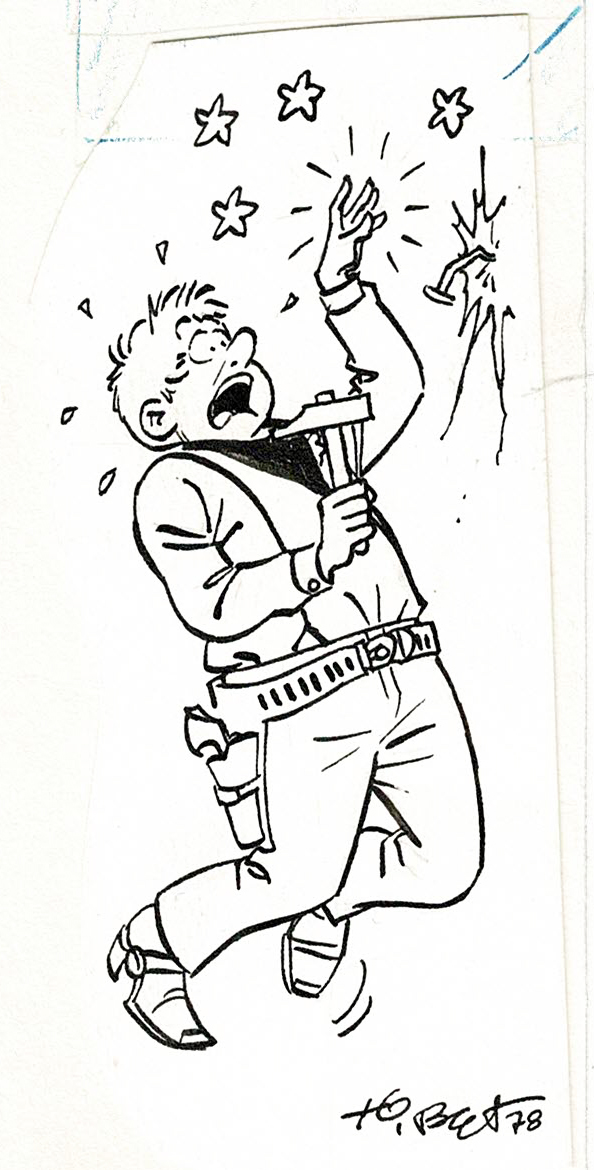 Kid Ordinn, dessin original à l’encre de chine. Dimensions : 10,5 cm x 5,5 cm.