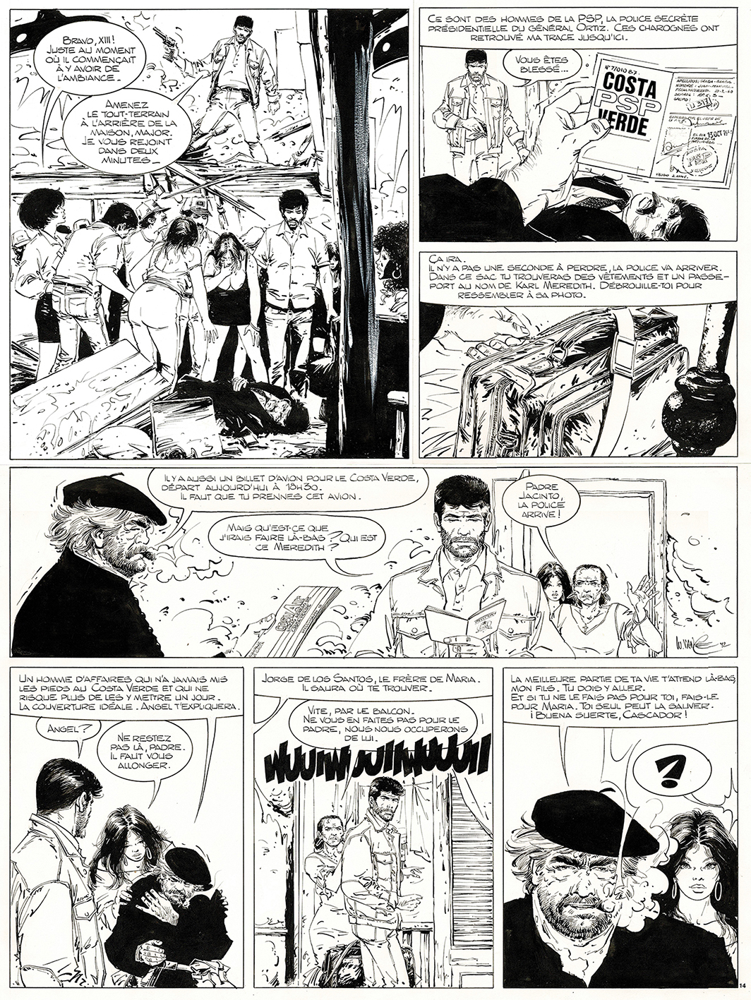 XIII, El Cascador, planche originale à l’encre de chine pour cet album paru en 1994 chez Dargaud. Dimensions : 63 cm x 45 cm.