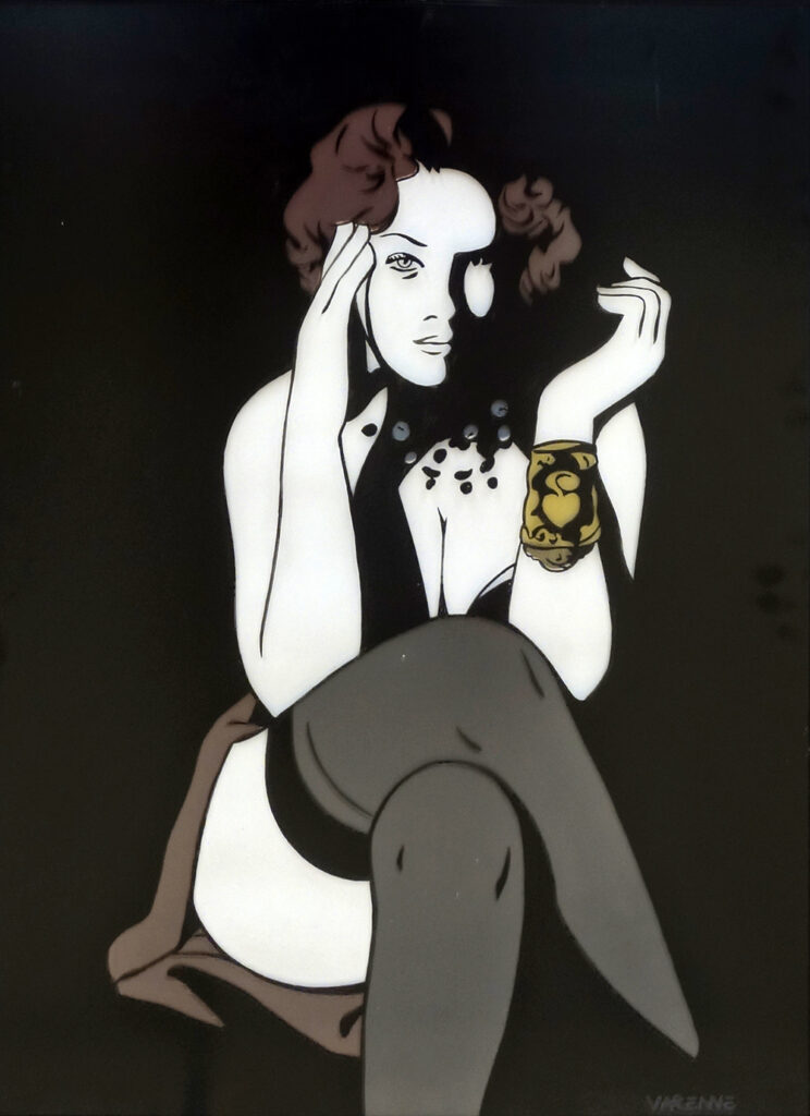 La femme au bracelet d’or, illustration originale à l’acrylique sur plexi. Dimensions : 70 cm x 50 cm.