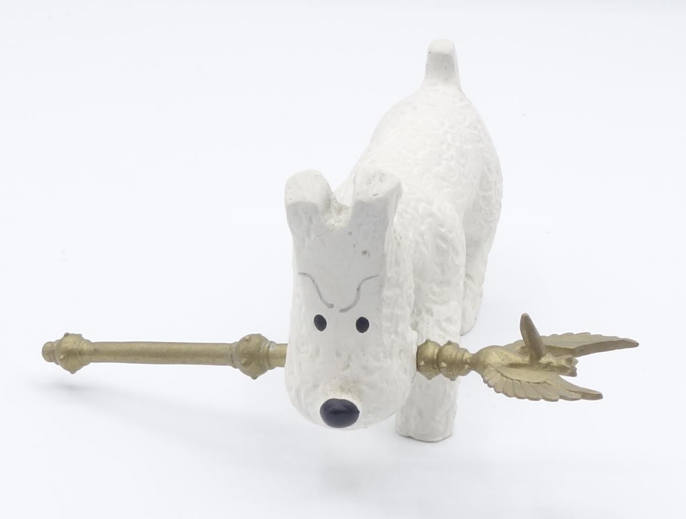 LEBLON-DELIENNE : Tintin 15 cm, Milou sceptre (580), Le Sceptre d’Ottokar, 1995, 7 cm, +/- 3200 ex.. Le sceptre est l’objet du Mythe de Pixi.