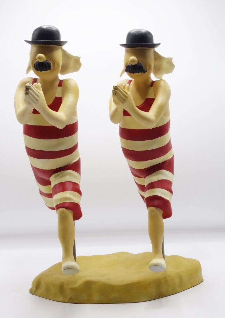 LEBLON-DELIENNE : Tintin, les Dupondt en maillot de bain, 1ère version sans les yeux, 1987, 40 cm, à nettoyer.