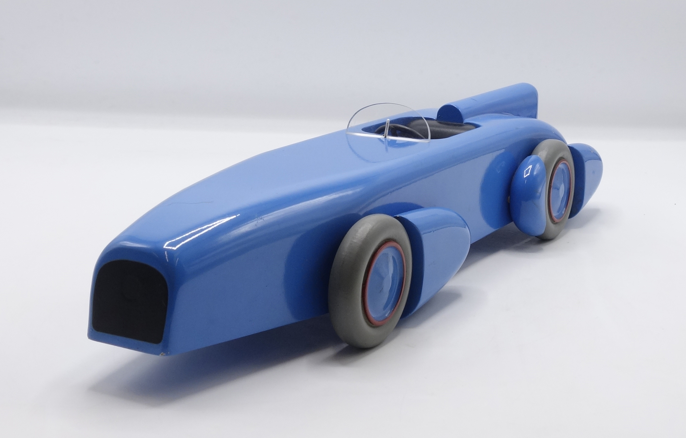 AROUTCHEFF : Jo et Zette, la voiture de Mr Pump, la Météore (H16), 1ère version bois sans personnage, 1986, 42 cm, C étiquette.