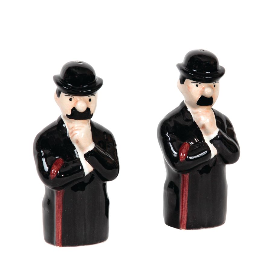LA CHAISE LONGUE : Tintin, les Dupondt – salière & poivrier, 1985, 10 cm, céramique.
