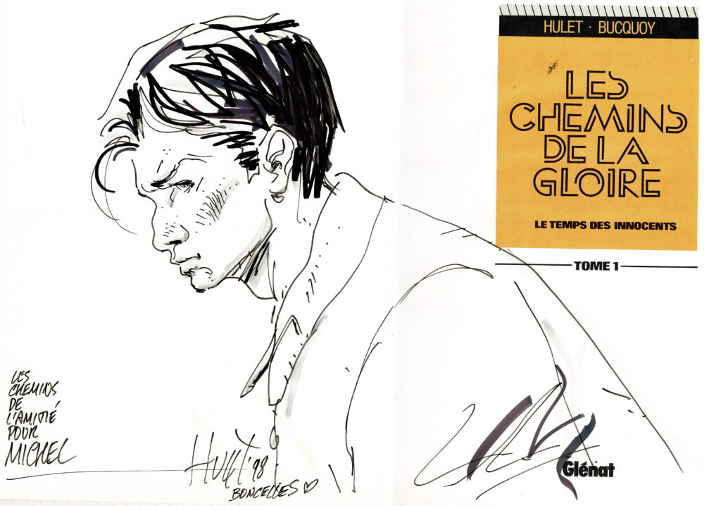 Les chemins de la gloire T1 en réédition, agrémenté d’une dédicace. Proche de l’état neuf.
