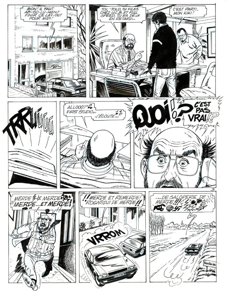 La Traite des planches, planche originale à l’encre de chine. Dimensions : 43,5 cm x 34 cm.