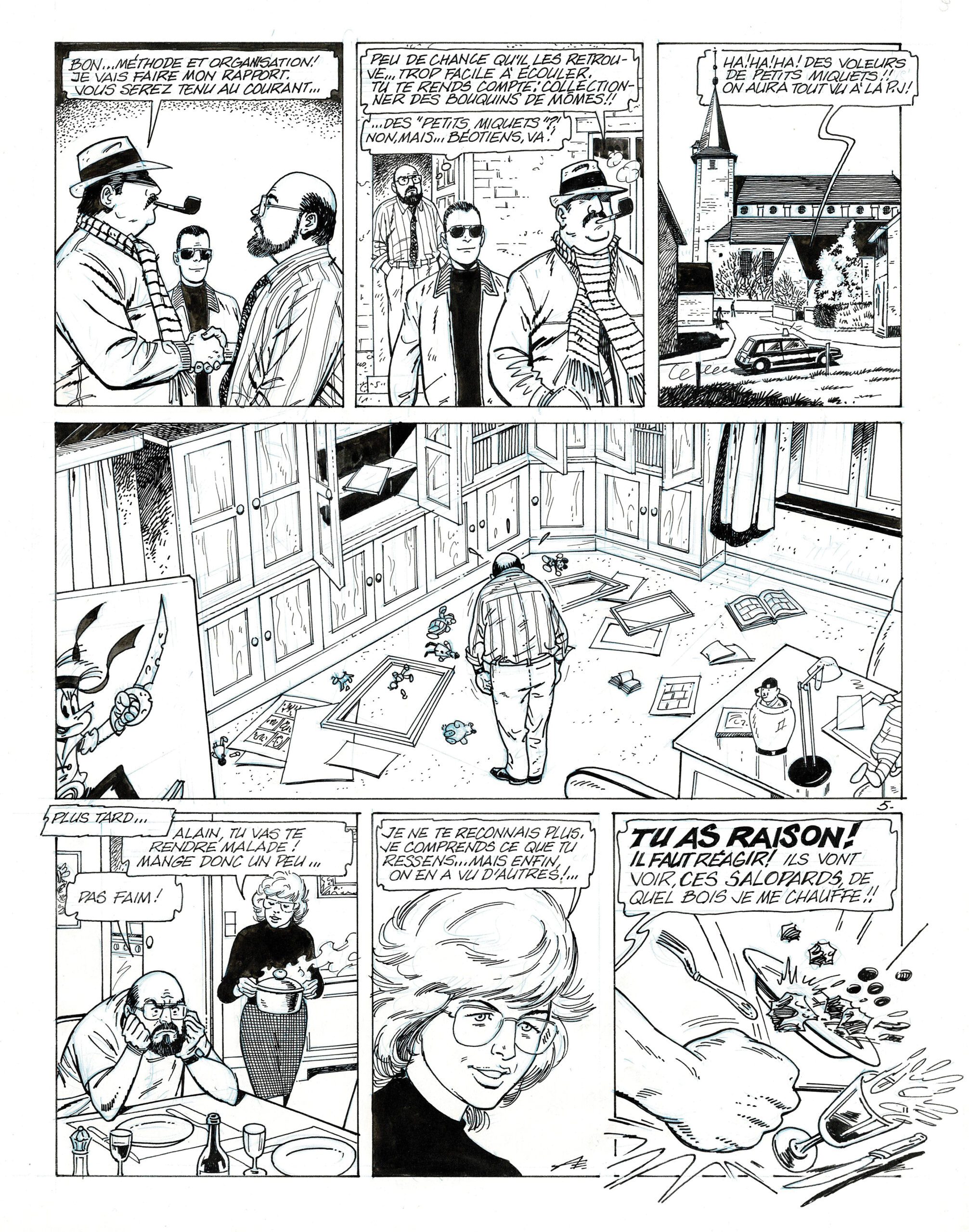 La Traite des planches, planche originale à l’encre de chine. Dimensions : 43,5 cm x 34 cm.