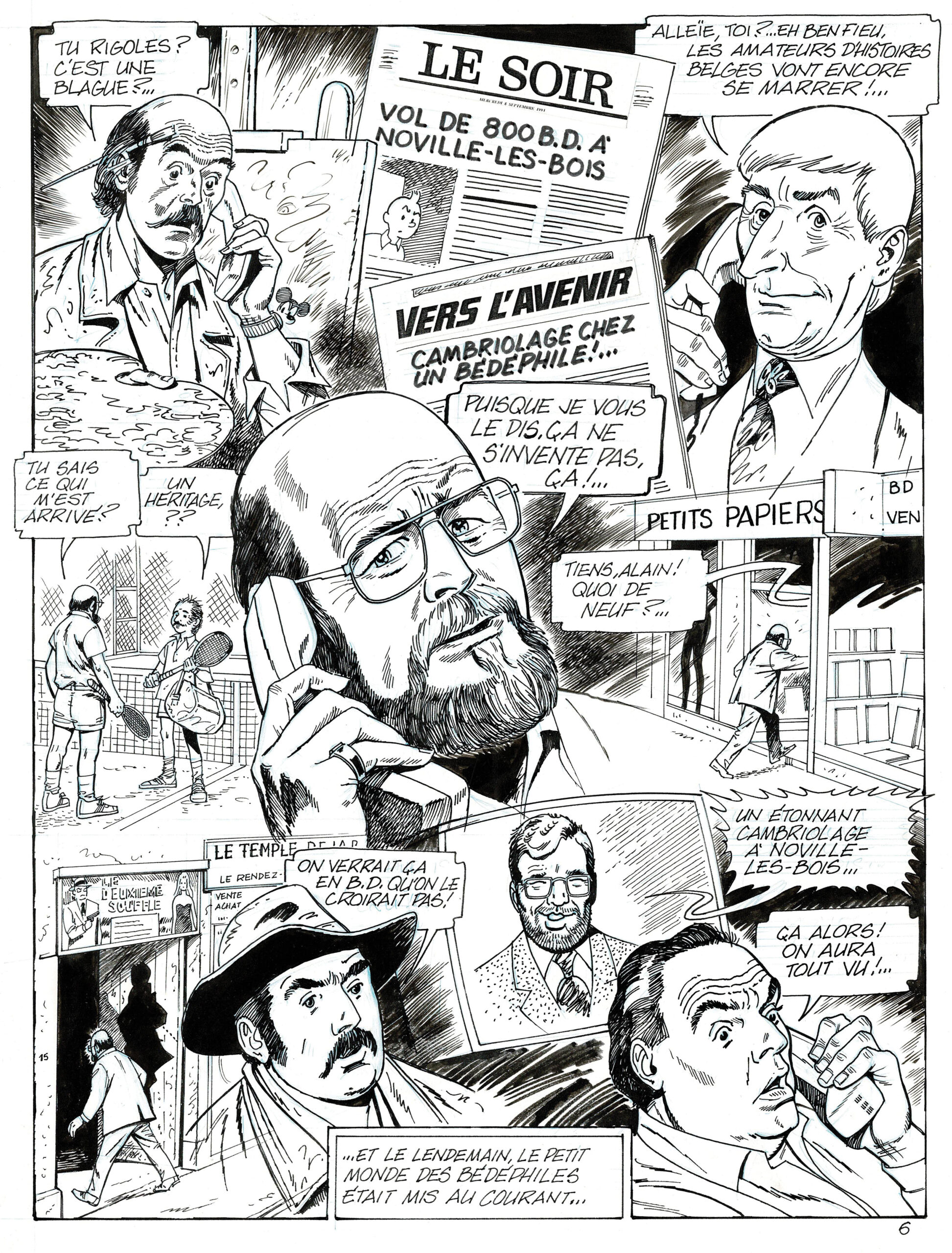 La Traite des planches, planche originale à l’encre de chine. Dimensions : 43,5 cm x 34 cm.