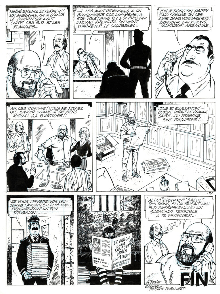 La Traite des planches, planche originale à l’encre de chine. Dimensions : 43,5 cm x 34 cm.