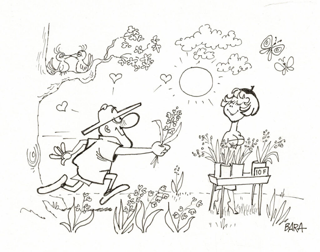 Max l’explorateur, dessin original à l’encre de chine réalisé pour un calendrier. Dimensions : 29,5 cm x 21 cm.