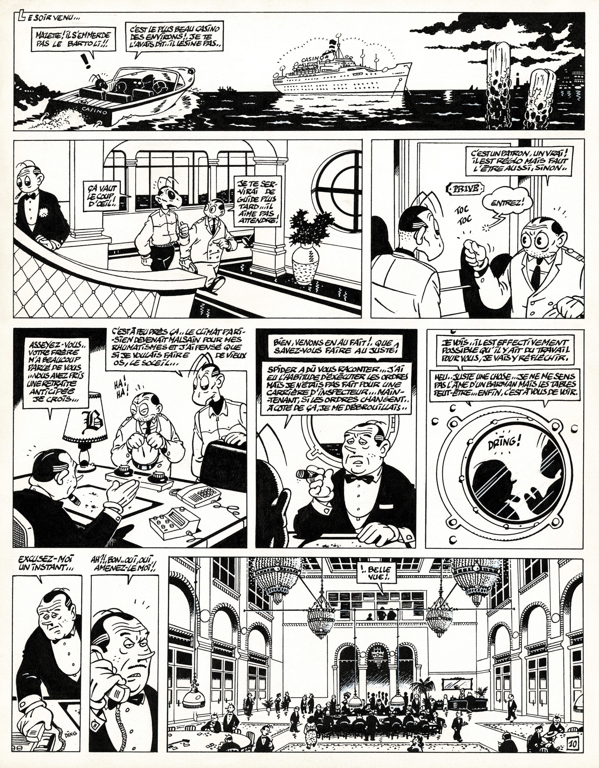 Gomina, Le point du jour, planche originale à l’encre de chine. Dimensions : 40 cm x 31,5 cm.