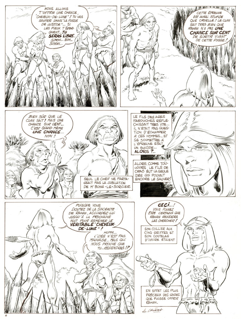 Rahan, Le vengeur de la lune ronde, planche originale à l’encre de chine. Dimensions : 46 cm x 32,5 cm.