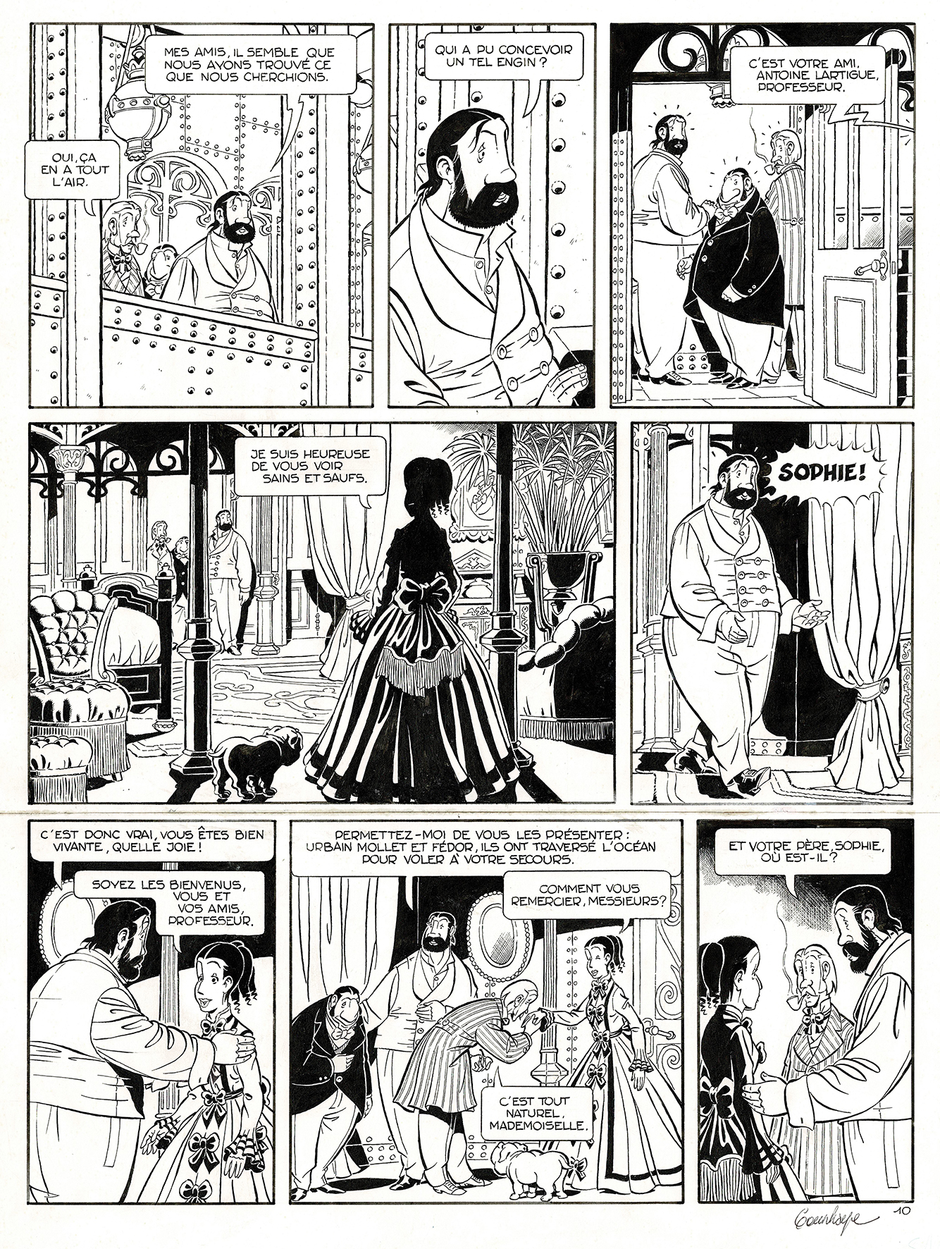 Professeur Stratus, La forteresse amphibie, planche originale à l’encre de chine. Dimensions : 54 cm x 39 cm.