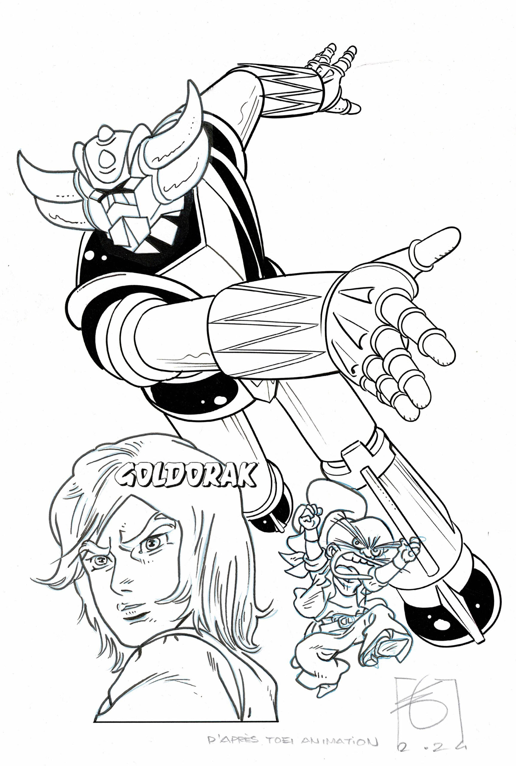 Goldorak, dessin original à l’encre de chine. Dimensions : 30 cm x 21 cm.