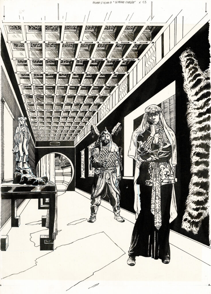 Poupée d’ivoire, La Reine oubliée, couverture originale à l’encre de chine pour cet album paru en 1990 chez Glénat. Dimensions : 42 cm x 29,5.