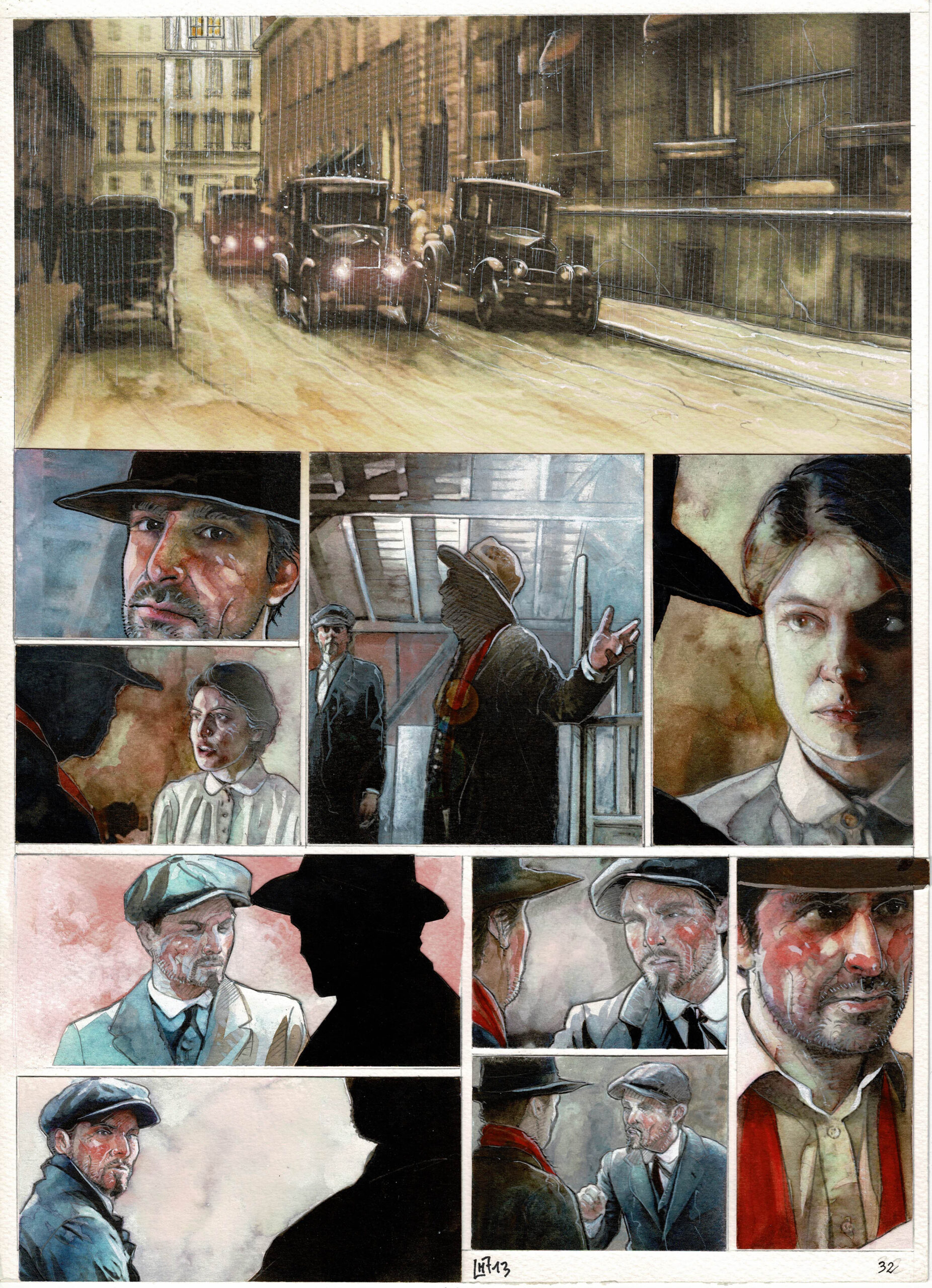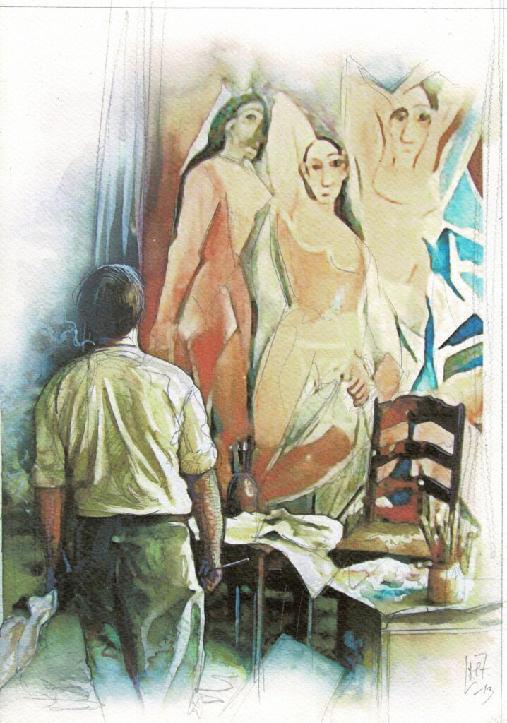 Modigliani, Prince de la bohème, planche originale en couleurs directes. Au verso de la planche, un superbe dessin en couleurs directes. Dimensions : 41 cm x 29,5 cm.