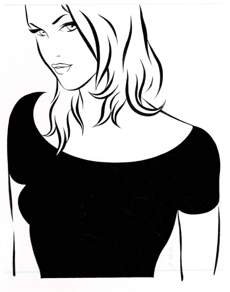 Pin-Up, dessin original à l’encre de chine. Dimensions : 29,5 cm x 21 cm.