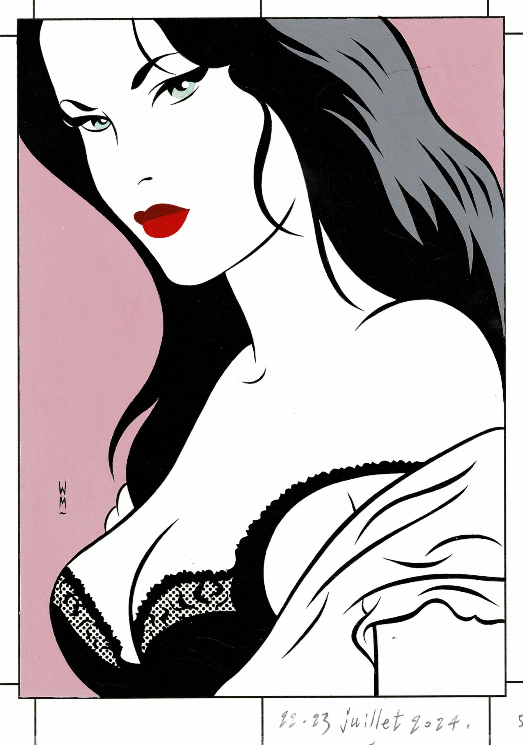 Pin-Up, dessin original à l’encre de chine et aux encres de couleurs. Dimensions : 23,5 cm x 18 cm.