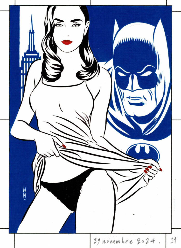 Pin-Up, dessin original à l’encre de chine et aux encres de couleurs. Dimensions : 24 cm x 18 cm.