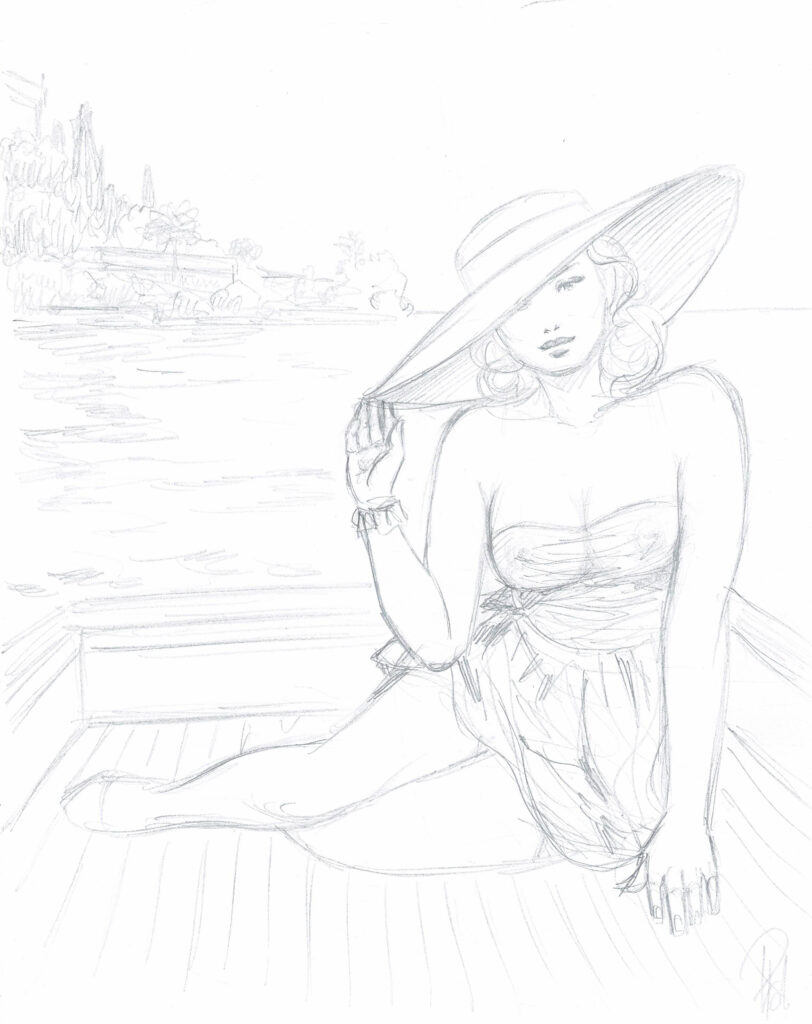 Transparence & French Riviera, dessin original à la mine de plomb. Dimensions : 29,5 cm x 21 cm.