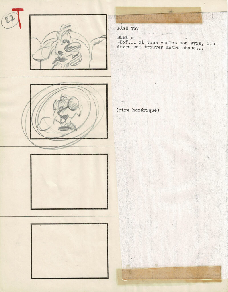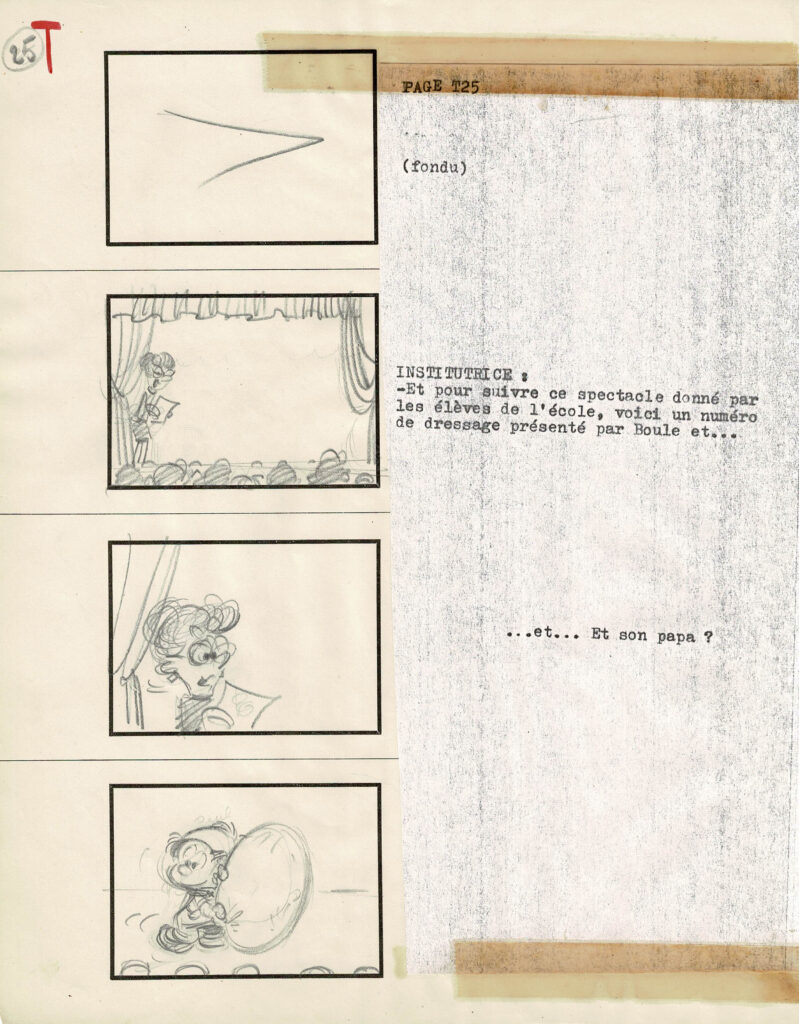 Boule et Bill, Story board avec des dessins crayonnés de Roba. Dimensions : 2x 27,5 cm x 21,5 cm.