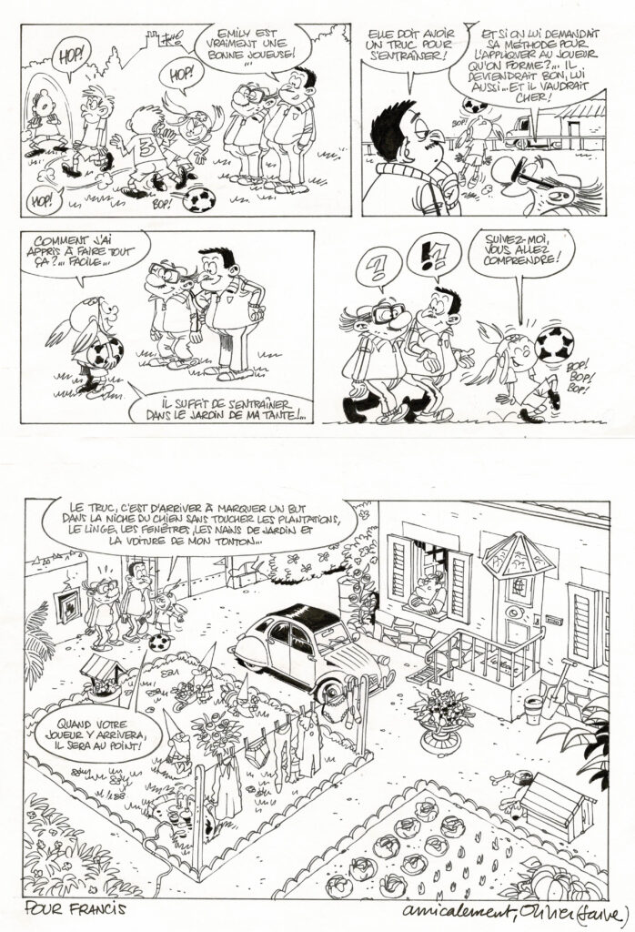Les foot-maniacs, planche originale à l’encre de chine. Dimensions : 39,5 cm x 29,5 cm.