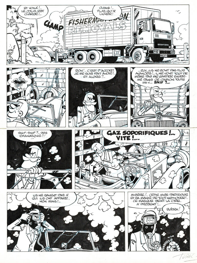 Clifton, Atout… coeur !, planche originale à l’encre de chine pour cet album paru en 1981 au Lombard. Dimensions : 43,5 cm x 32,5 cm.