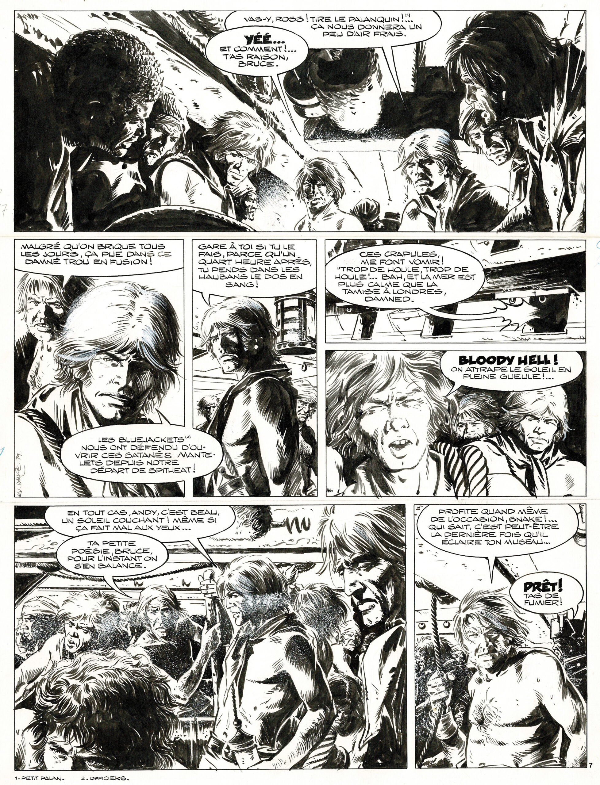 Bruce J. Hawker, L’orgie des damnés, planche originale à l’encre de chine pour cet album paru en 1986 au Lombard. Dimensions : 44,5 cm x 32,5 cm.
