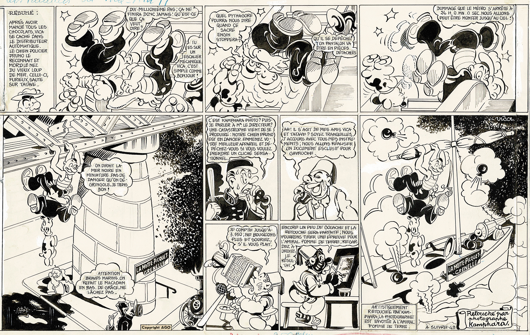 Les aventures de Vica, planche originale à l’encre de chine. Dimensions : 45,5 cm x 30 cm.