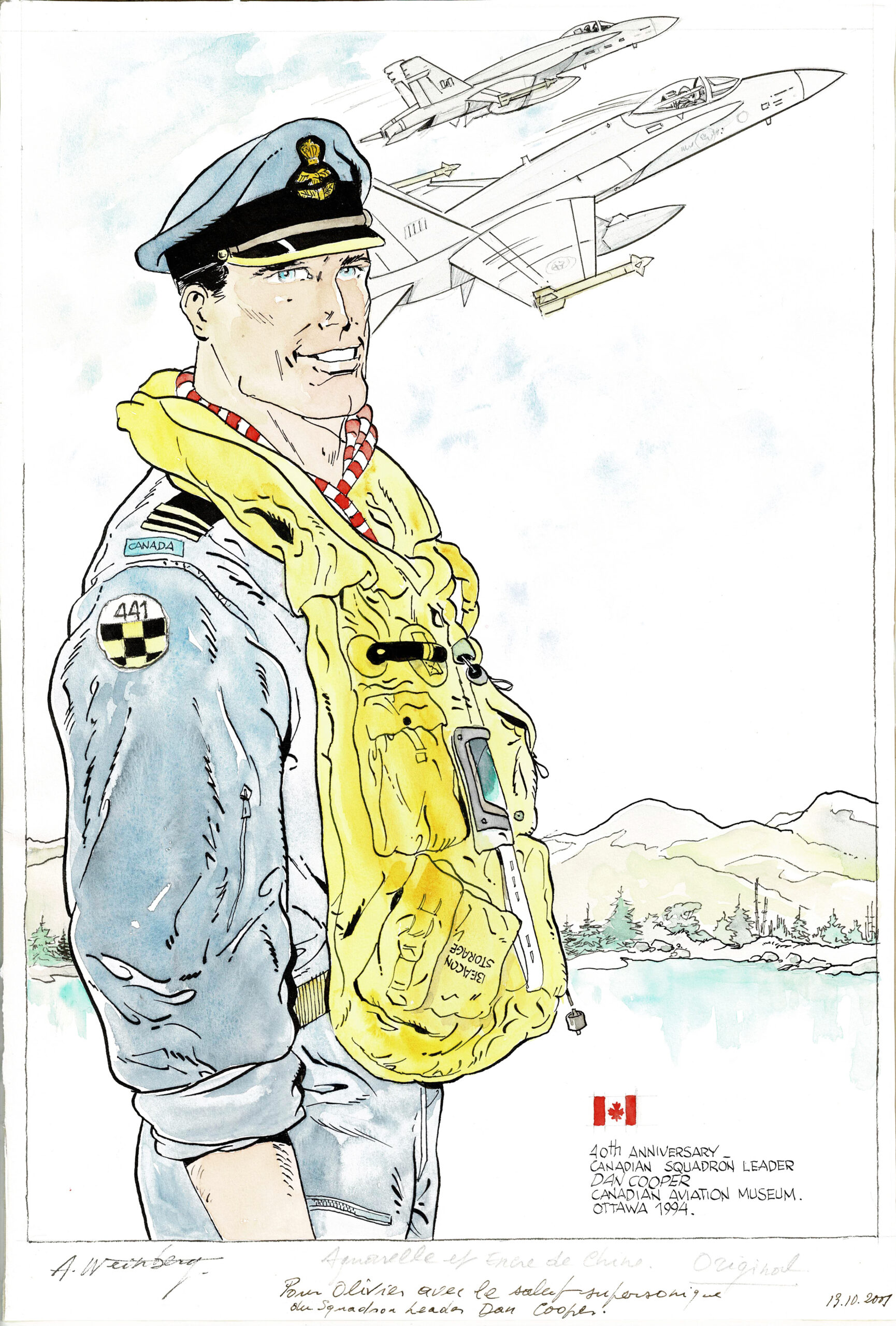 Dan Cooper, dessin original à l’encre de chine et à l’aquarelle. Dimensions : 41 cm x 27,5 cm.