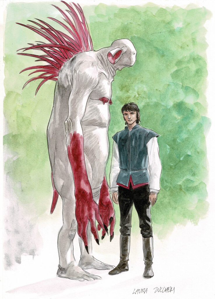 Belzagor, dessin original à l’encre de chine et à l’aquarelle. Dimensions : 29,5 cm x 21 cm.