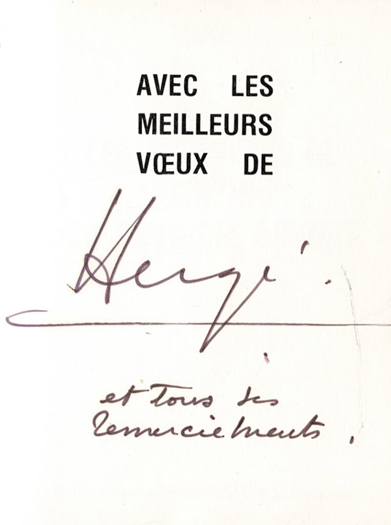 Tintin, carte de voeux de 1981 : Mini-album Tintin au pays des Soviets, signée. Très bon état.