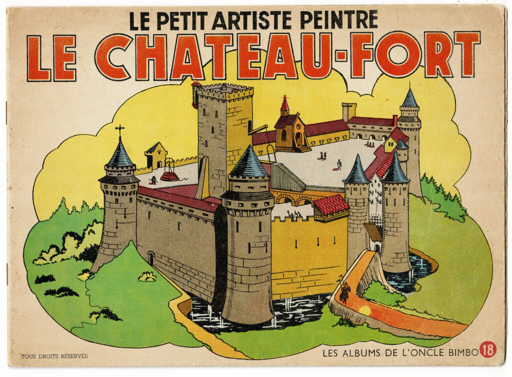 Album à colorier « Le chateau-fort » (Les Albums d’oncle Bimbo 18, album non colorié). Très bon état.