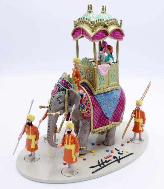 MOULINSART PLOMB : Tintin, 46231, la scène triomphale – éléphant altesse, Les Cigares du pharaon, 2007, n°/777, 26 cm, BC.