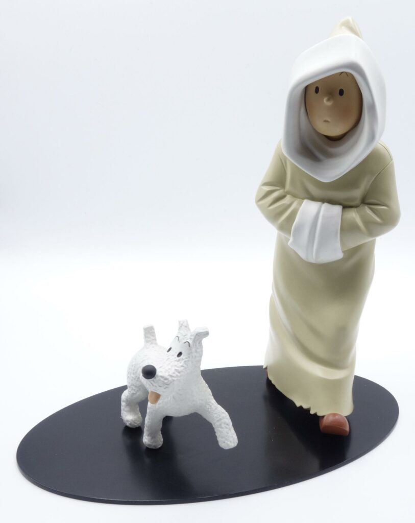 MOULINSART RESINE : Tintin Nostalgie, 45938, l’oriental ou djellaba, Le Crabe aux Pinces d’or, 2005, n°/2000, 20 cm, BC.