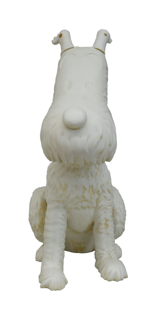 PIGEON : Milou Pousse-Pousse, sculpture inspirée des aventures de Tintin Le Lotus Bleu, Maquette réalisée et licencée en 2005 par Jean-Marie Pigeon pour le célèbre Pousse-Pousse, signée sur la pièce par Jean-Marie Pigeon. Exemplaire unique !
