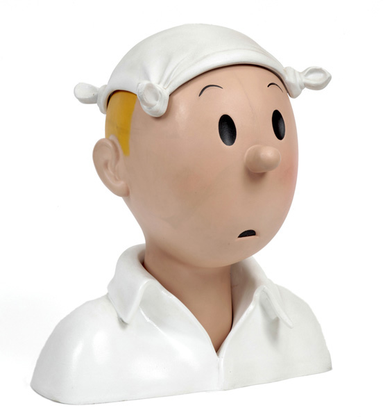 Jean-Marie PIGEON : Tintin, buste de Tintin au mouchoir, Crabe aux Pinces d’Or, édité par SOL3, 1995, +/- 200 ex. réalisés pour l’ensemble des versions. Version en résine légère. Muni d’une puce électronique. C’est la version la plus RARE.