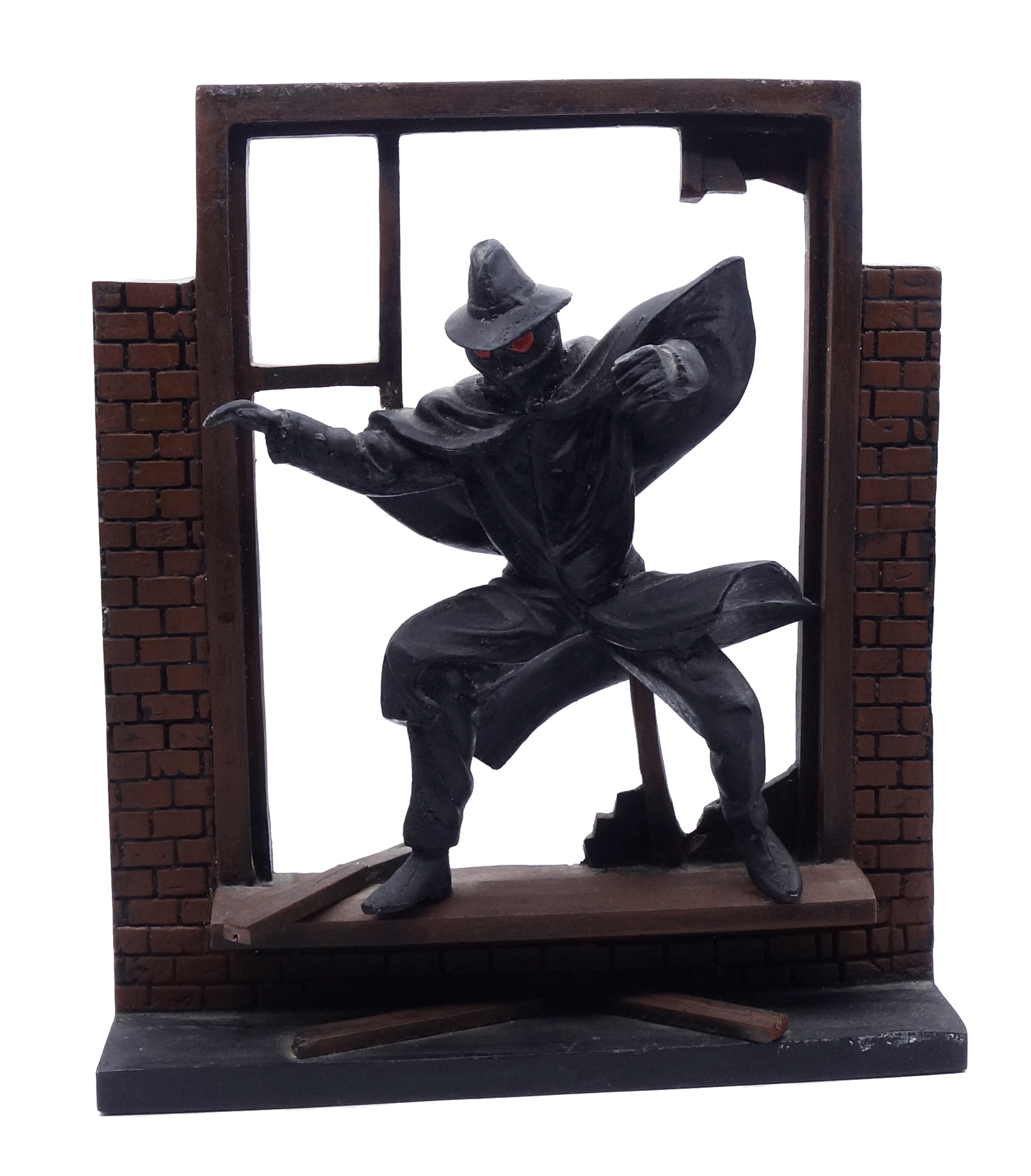 ATELIER FRED : Blake et Mortimer, La Marque Jaune, Olrik guinea pig sautant par la fenêtre, 1999, N°/100, 25 cm.