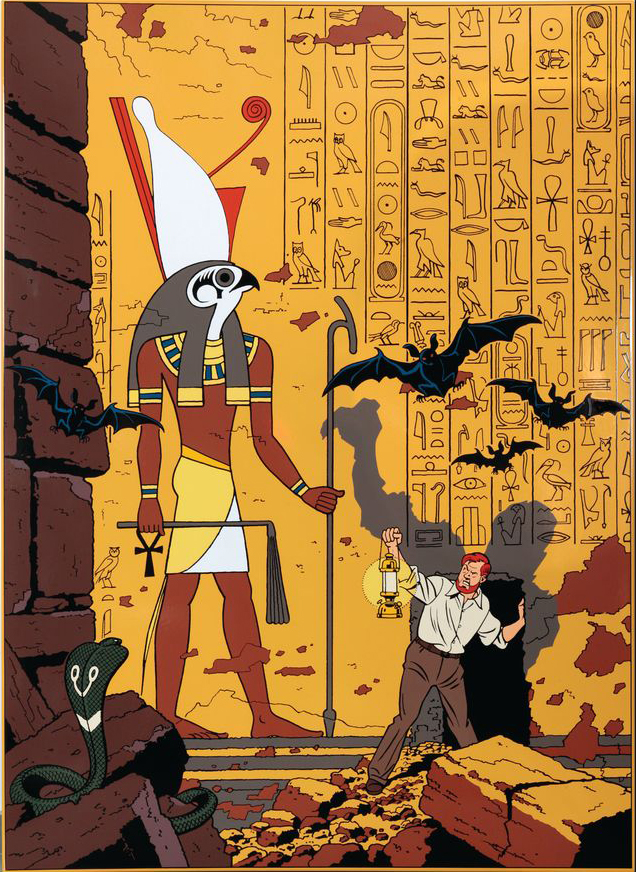 L’EMAILLERIE BELGE : Blake et Mortimer, plaque émaillée n°/150 représentant la couverture du Mystère de la grande pyramide 1, 2006. Dimensions: 105 cm x 77 cm.