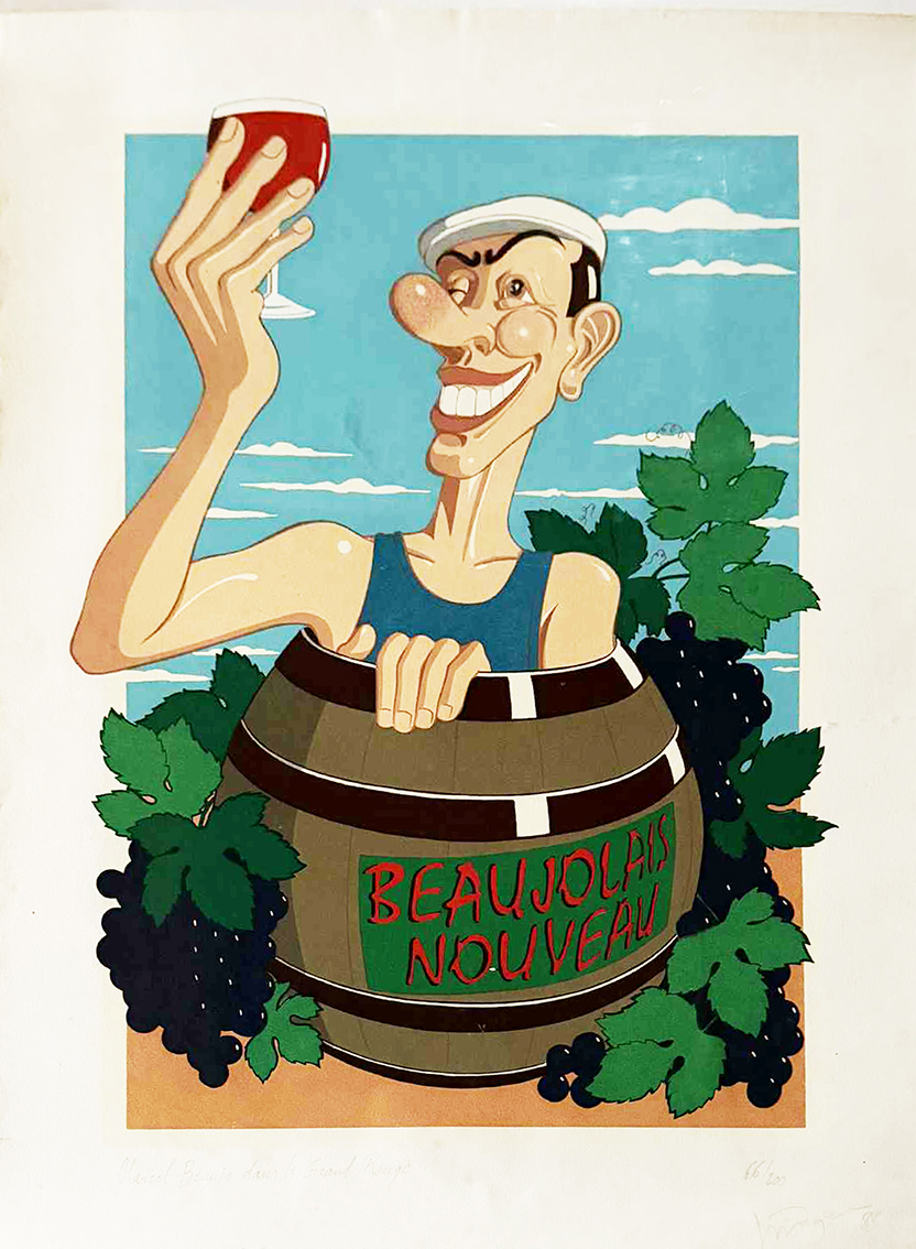 Marcel Beaujol dans le Grand Rouge, sérigraphie limitée à 200 ex., numérotée et signée. Dimensions : 66 cm x 47 cm.