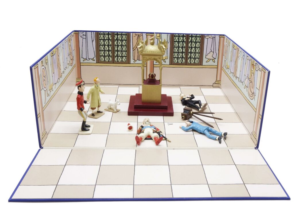 MOULINSART PLOMB : Tintin scène prestige, 46916, le vol au palais royal, Le Sceptre d’Ottokar, 2000, n°/1000, 14 cm, BC.