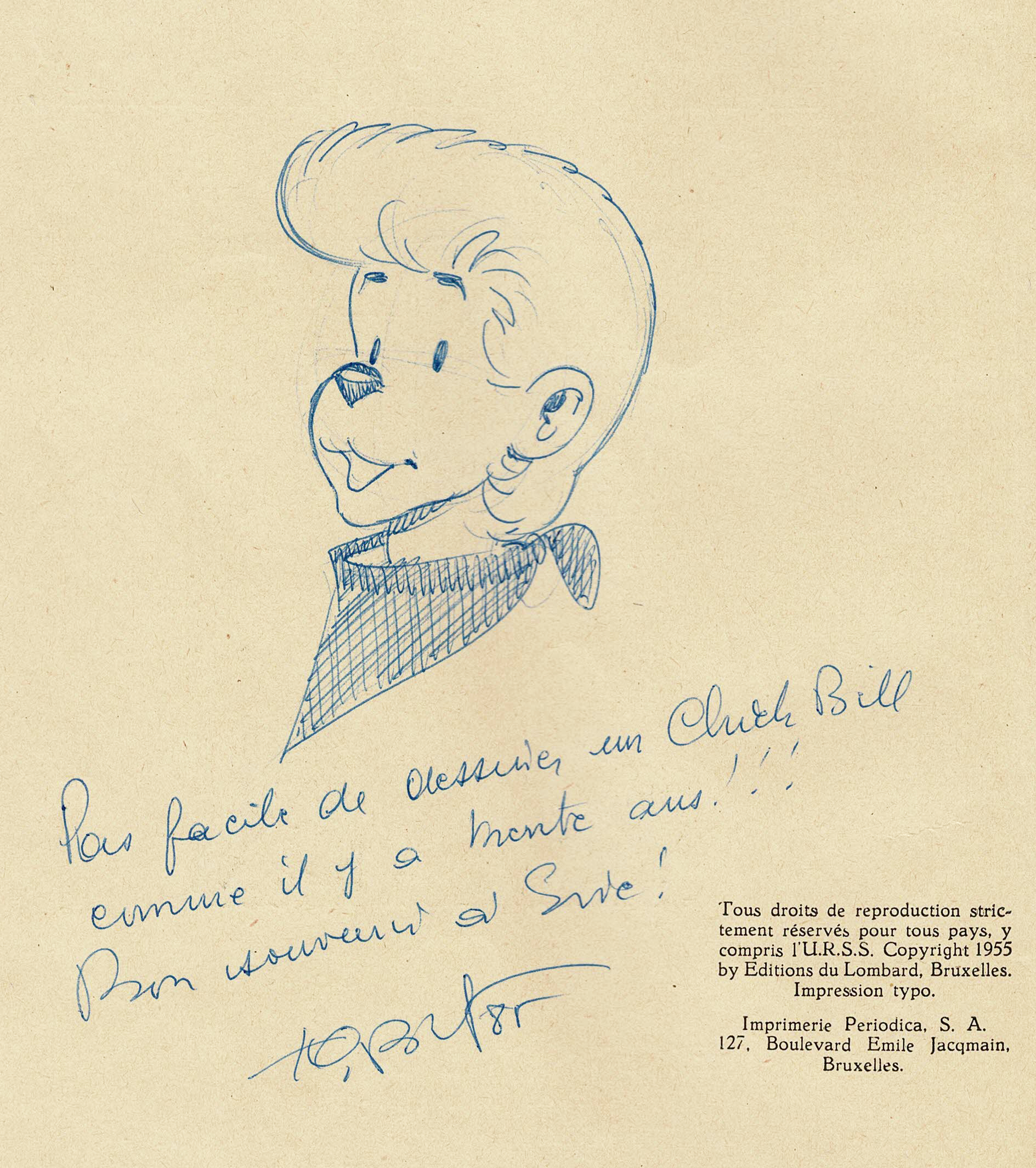 Chick Bill, La route d’acier, édition originale de 1955 sans point Tintin), agrémenté d’une dédicace. Très bon état.