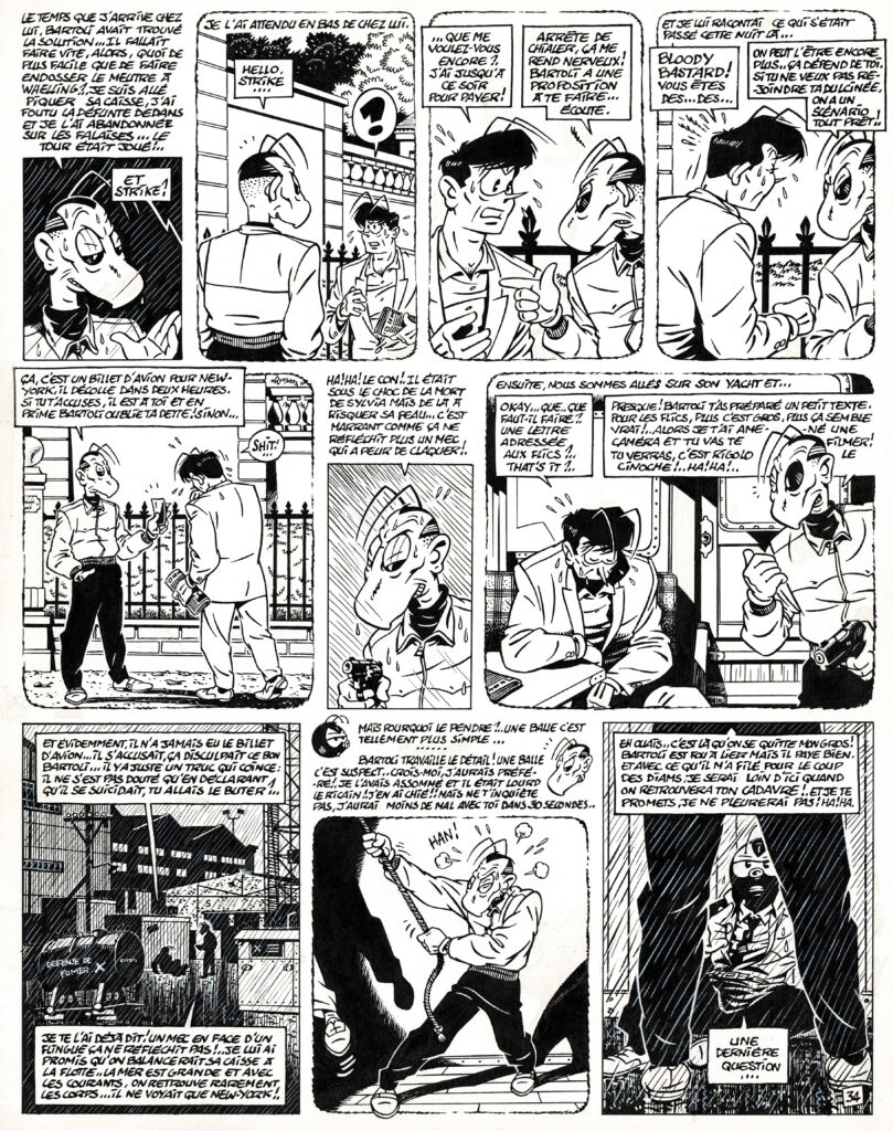 Gomina, Le point du jour, planche originale à l’encre de chine. Dimensions : 40 cm x 31,5 cm.