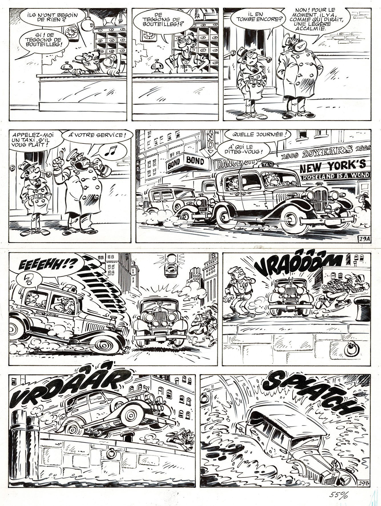 Sammy, Crash à Wall Street, planche originale à l’encre de chine pour cet album paru 1989 chez Dupuis. Dimensions : 51 cm x 36,5 cm.