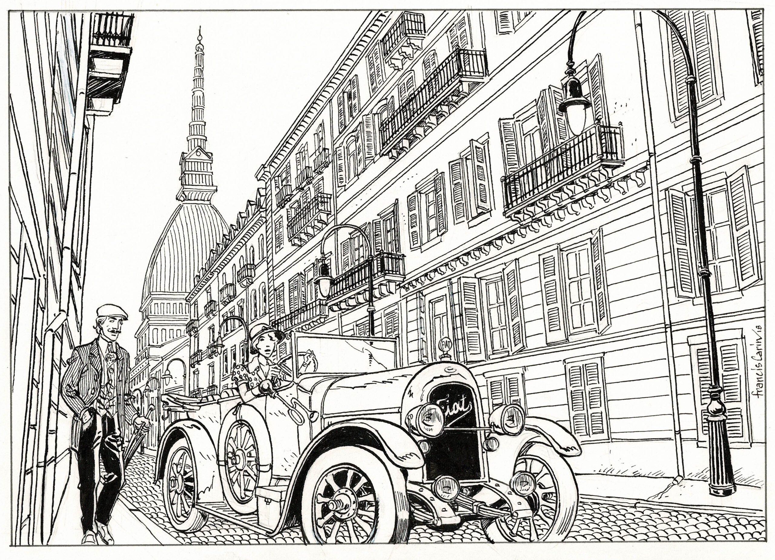Victor Sackville à Turin, dessin original à l’encre de chine. Dimensions : 34 cm x 23,5 cm.