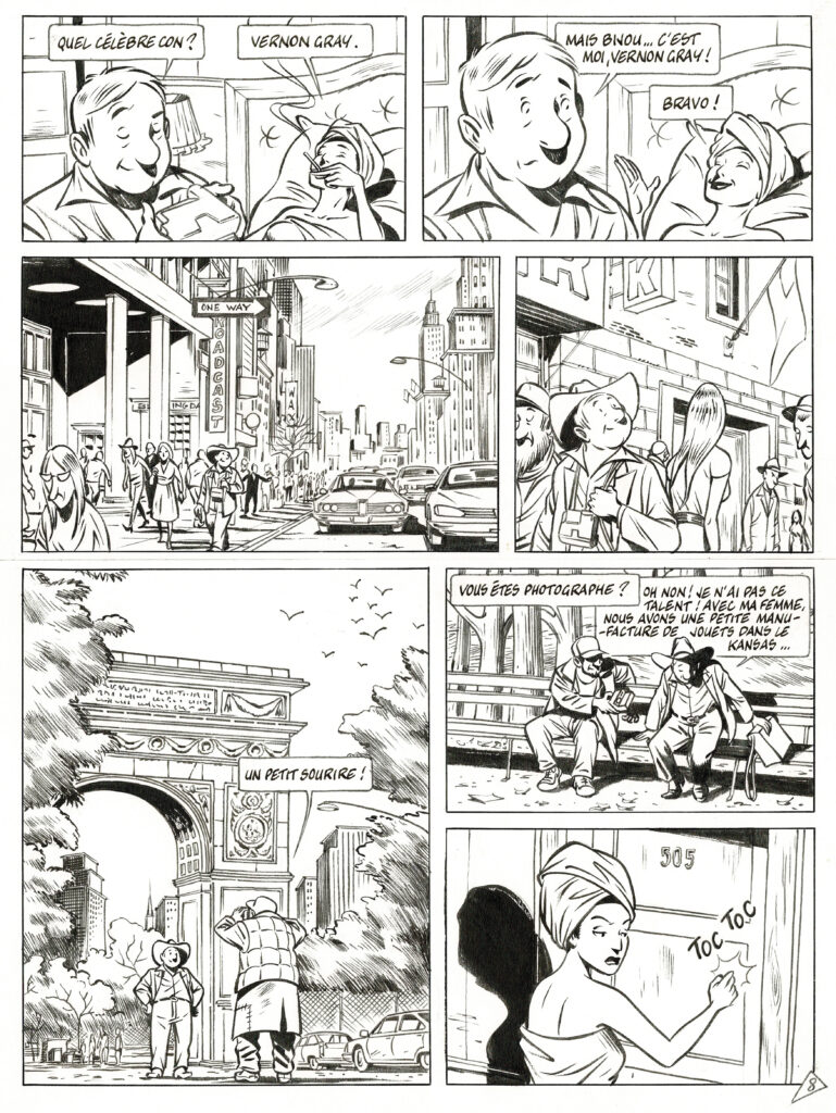 Red River Hôtel, planche originale à l’encre de chine. Dimensions : 41 cm x 31 cm.