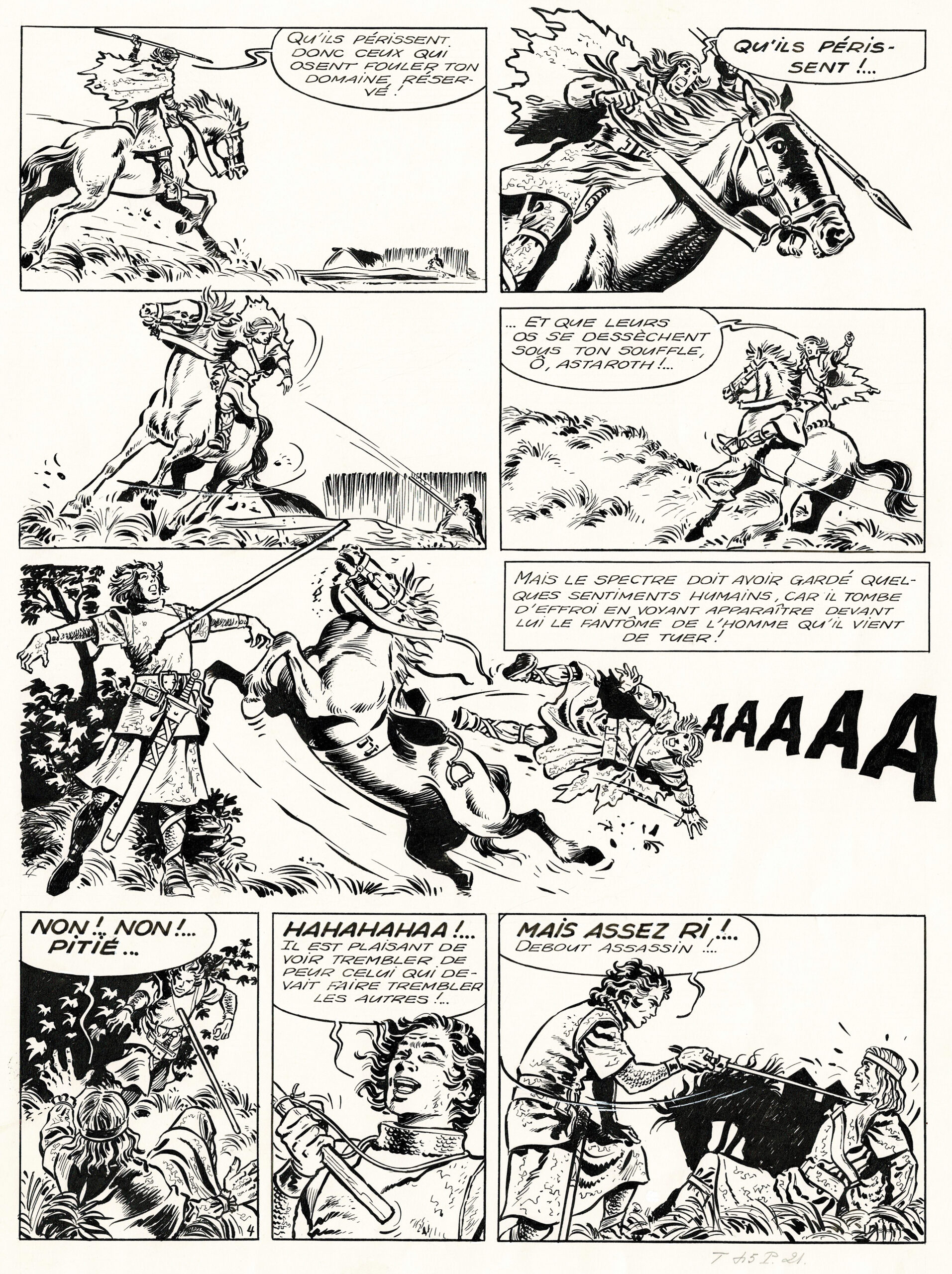 Chevalier Ardent, Le spectre de la motte, planche originale à l’encre de chine. Dimensions : 51 cm x 36,5 cm.
