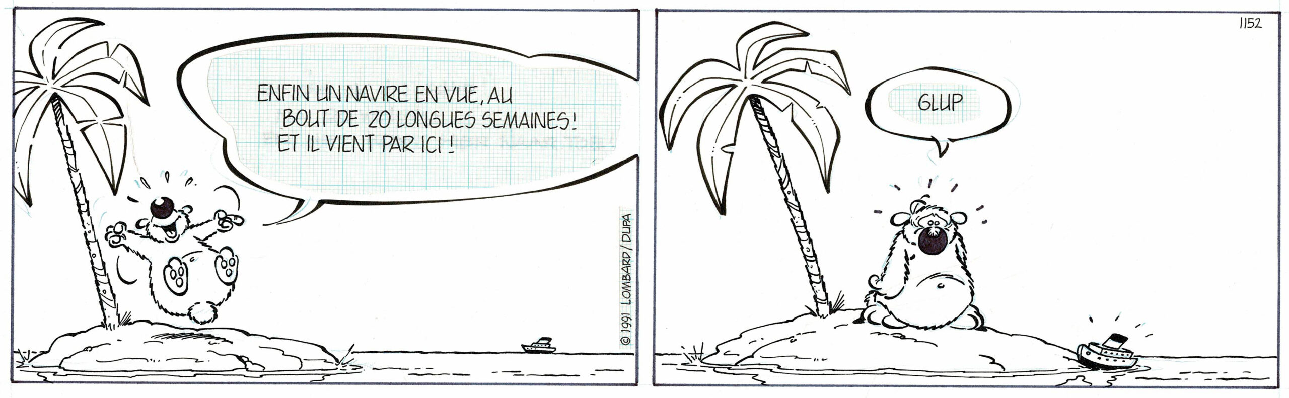 Cubitus, strip original à l’encre de chine. Dimensions : 31,5 cm x 10 cm.