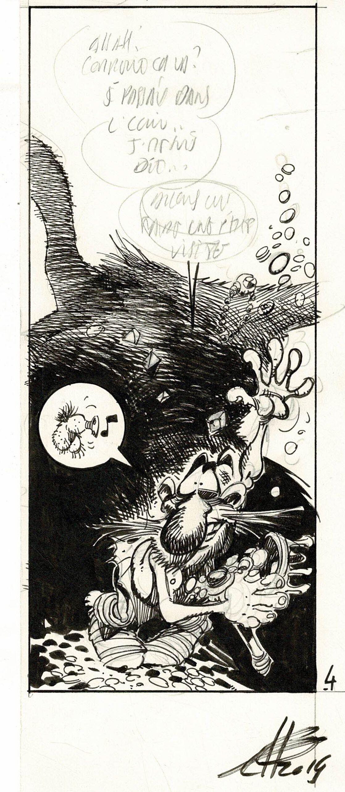 Krän, dessin original à l’encre de chine. Dimensions : 23 cm x 9,5 cm.