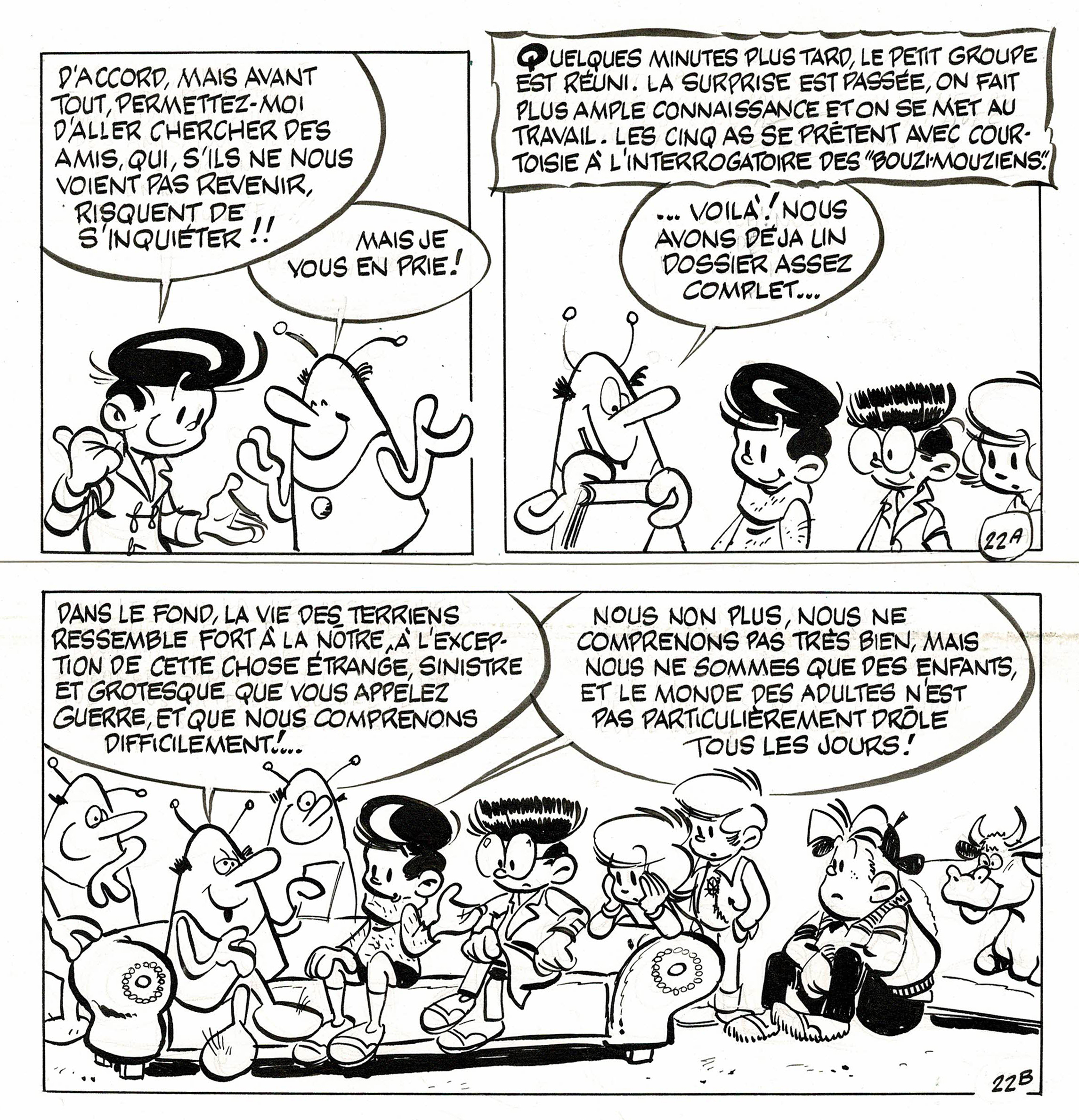 Les As, Les Bouzis-Mouzis, planche originale à l’encre de chine. Dimensions : 23 cm x 23 cm.